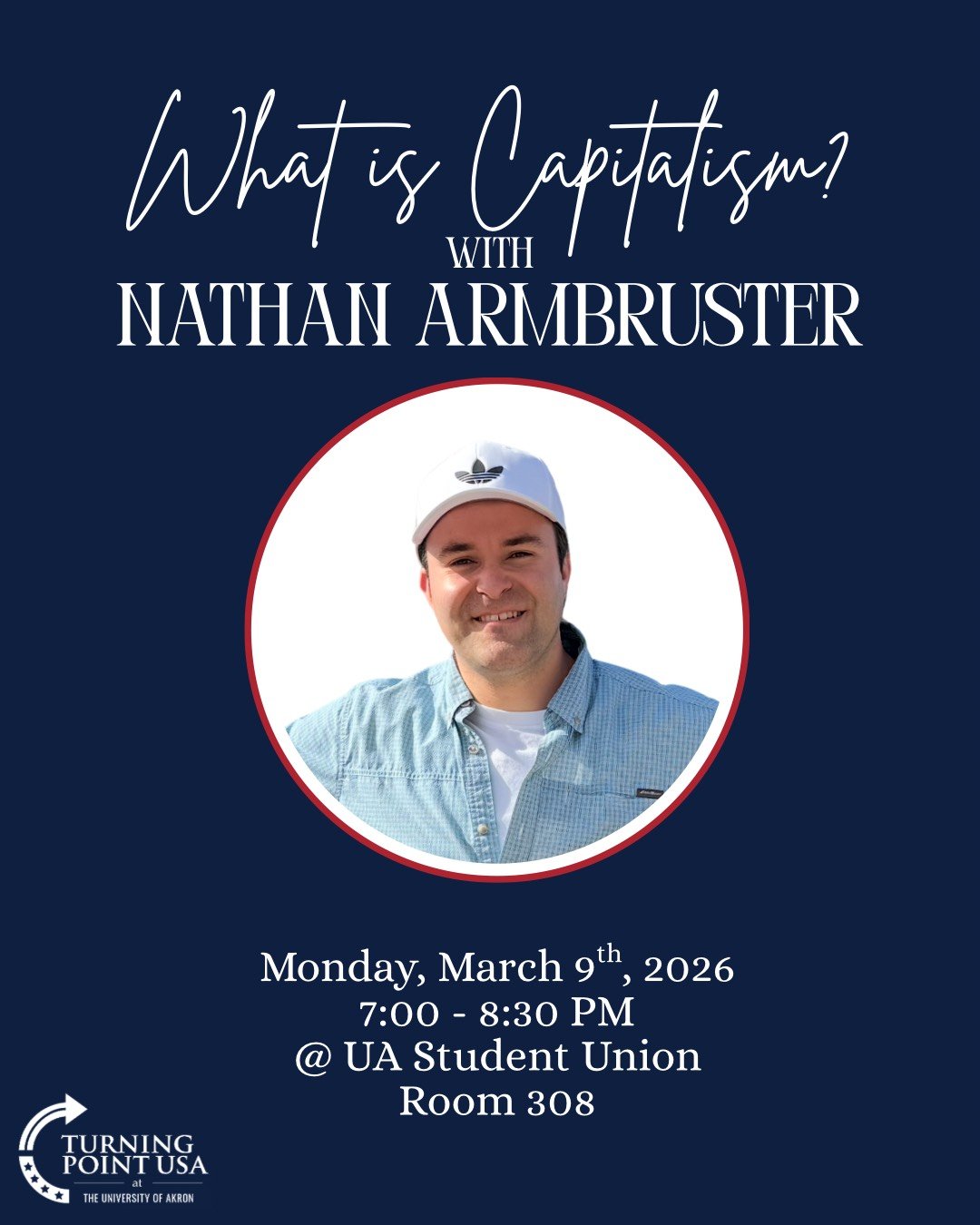 Join Turning Point USA at The University of Akron for “What is Capitalism?” featuring guest speaker Nathan Armbruster.