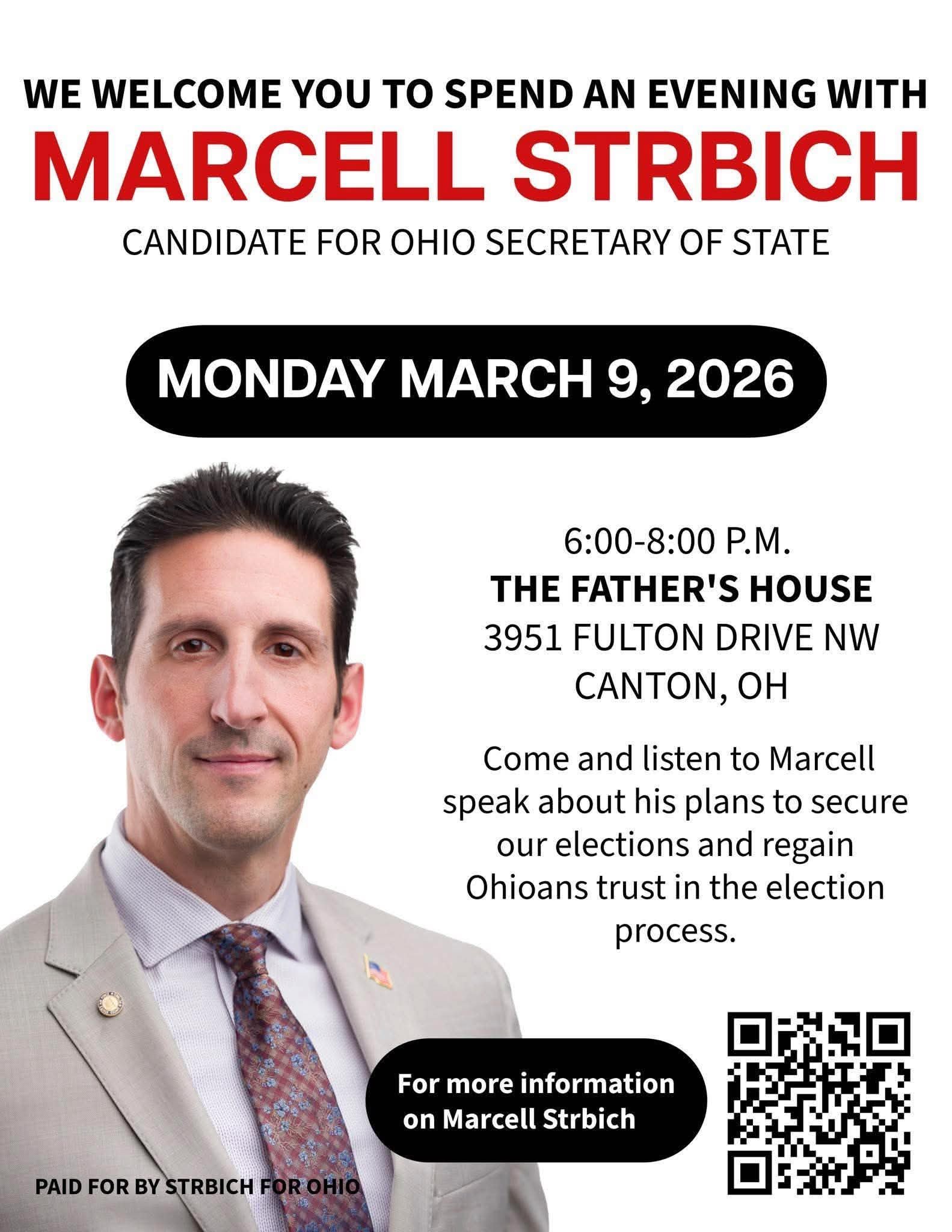 Come and listen to Marcell speak about his plans to secure our elections and regain Ohioans trust in the election process.
